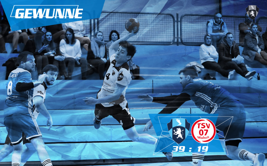 Nach dem Seitenwechsel ging es ähnlich weiter, die Löwen stellten weiter eine stabile Abwehr, die jetzt etwas offensiver agierte und so konnte man den Vorsprung mit einigen Kontern weiter ausbauen. Diese Führung wurde vom TSV kontinuierlich weiter auf 30:14 bis zur 46. Minute vergrößert. Trotz dieser deutlichen Führung und klaren Überlegenheit gaben die Malscher nicht auf, konnten den Vorsprung aber nicht weiter verkürzen. So gewannen die Löwen am Ende deutlich mit 39:19.