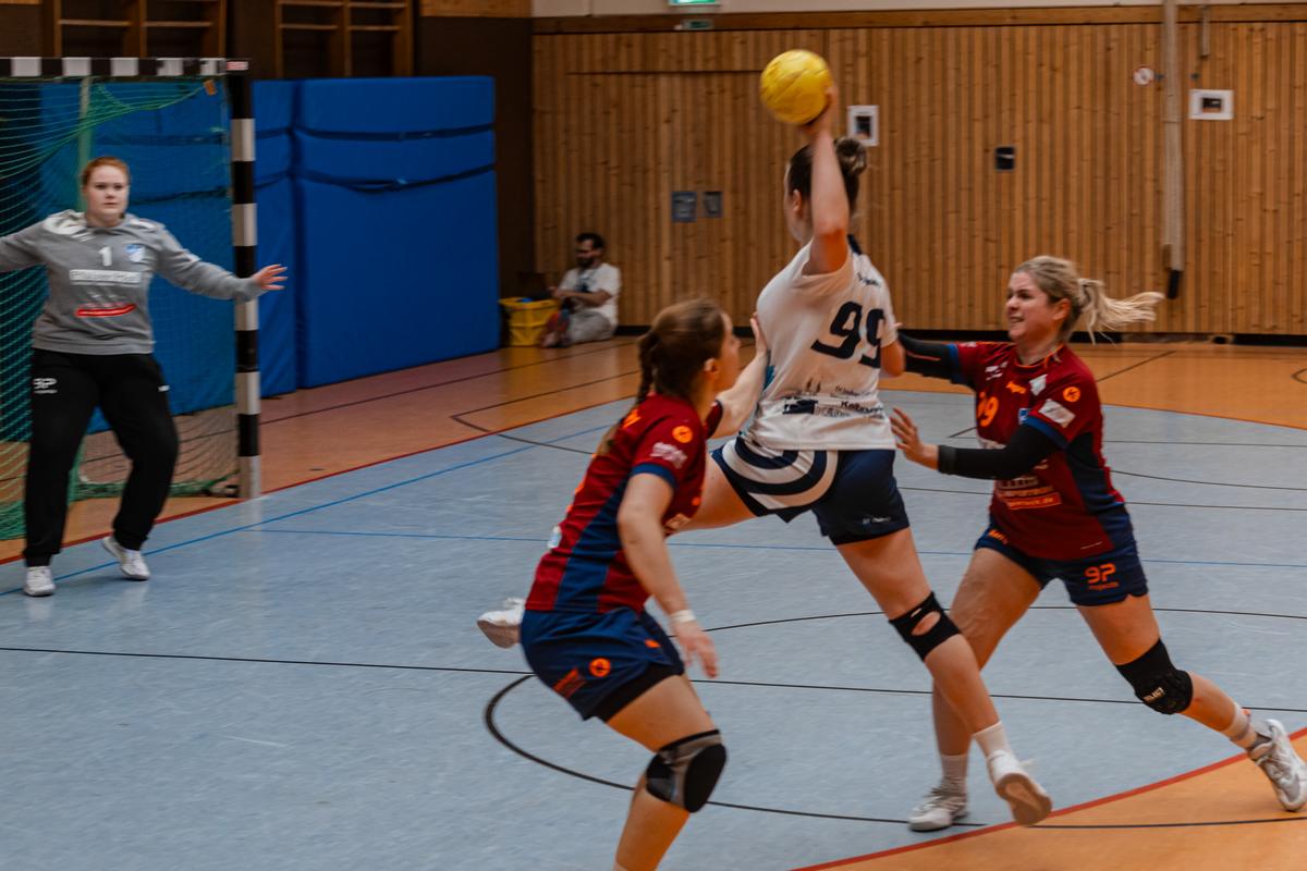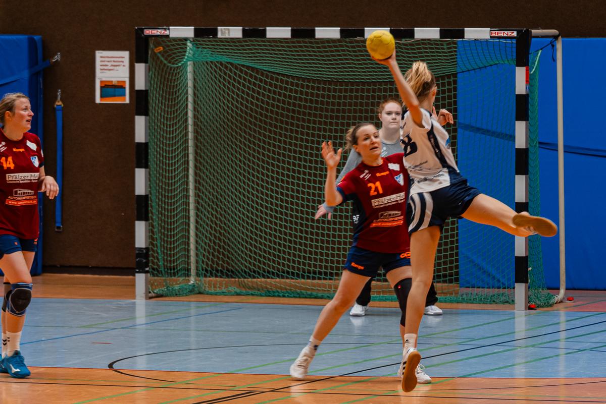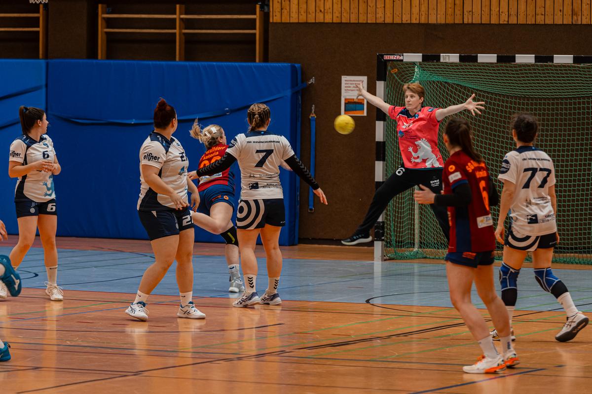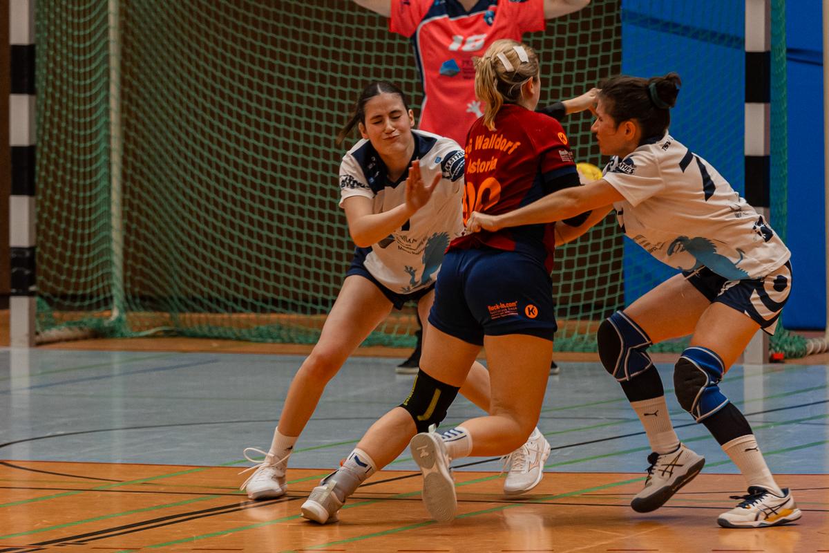 So dauerte die in den letzten Spielen schon gewohnte anfängliche „Eingewöhnungsphase“ praktisch bis zum Halbzeitpfiff. Die Abwehr hatte erhebliche Schwierigkeiten mit den guten 1:1-Aktionen und den starken Rückraumwerferinnen der Gäste, so dass schon nach vier Minuten ein 1:4-Rückstand zu Buche stand. Zwar gelang unserer Mannschaft beim 6:6 und 7:7 Mitte der ersten Halbzeit der Ausgleich, bis zur Pause konnten die Walldorferinnen aber wieder bis auf 9:13 davonziehen.