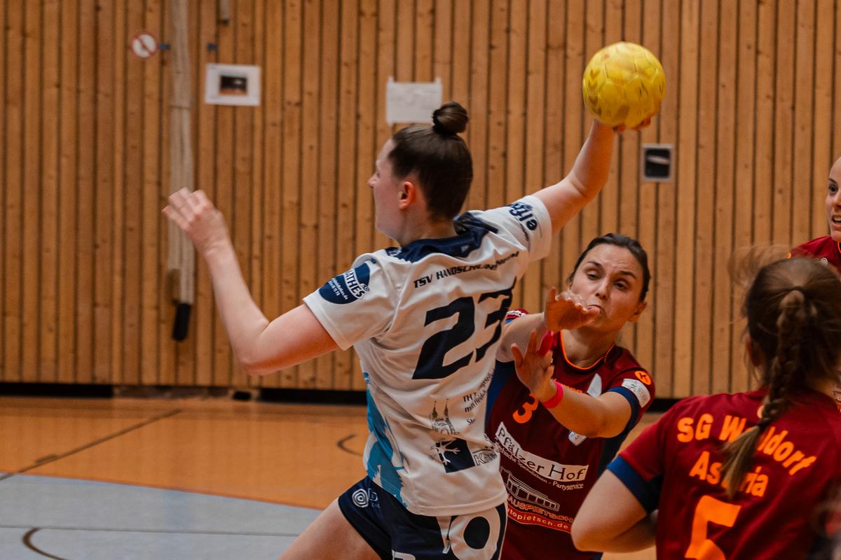 Dass es auch anders geht, zeigte die zweite Halbzeit. Es dauert nicht einmal sechs Minuten bis unsere Mannschaft beim 14:14 den Ausgleich geschafft hatte, auch unterstützt durch zwei Zeitstrafen gegen die Gäste. Von nun an war es ein spannendes Spiel mit wechselnden Führungen, wobei sich aber keine Mannschaft auf mehr als ein Tor absetzen konnte. In den letzten Spielminuten handelte sich Walldorf nochmals kurz hintereinander zwei Zeitstrafen ein, die unsere Mannschaft aber nicht zu ihrem Vorteil nutzen konnte; vielmehr gelangen den Gästen zwei Tore in Unterzahl zur 20:21-Führung. Nach einer TSV-Auszeit und bei stehenden Ovationen der Fans konnte unsere Mannschaft zunächst ausgleichen und kam 30 Sekunden vor Spielende noch einmal in Ballbesitz, bei dem Sekunden vor Ablauf der Spielzeit ein Strafwurf herausgeholt werden konnte. Bei der Ausführung des 7-m-Wurfes nach dem Schlusspfiff steigerte sich die Spannung nochmals. Die Parade der Gäste-Torfrau entriss unsere Spielerinnen aus ihren Träumen und stürzte sie in tiefe Enttäuschung.