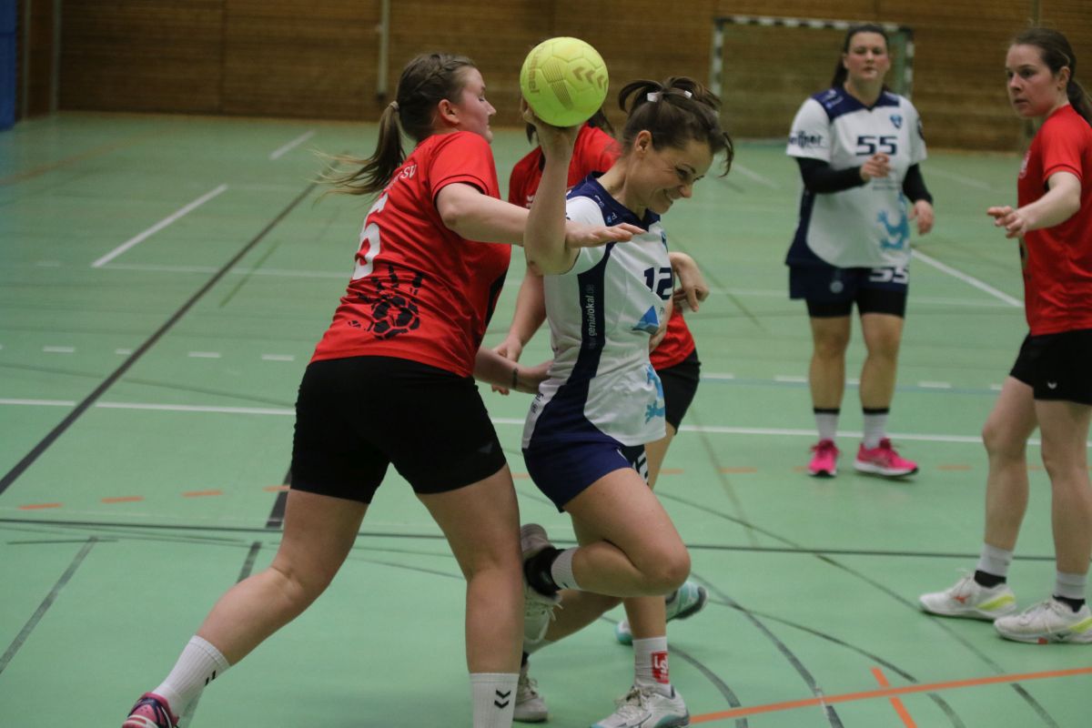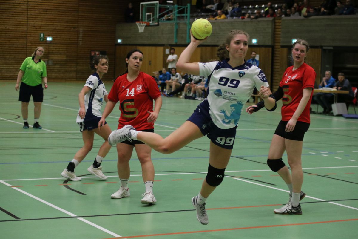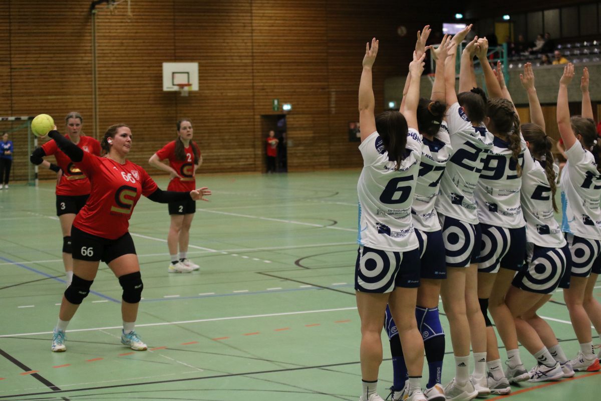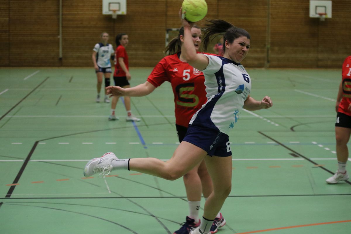 Das für den TSV so wichtige Spiel begann etwas zäh: Die Abwehr stand zwar stabil, im Angriff ging der Ball flüssig durch die Reihen, das einzige Manko war eine katastrophale Chancenverwertung. So führten die Gastgeberinnen mit 3.2 in der 13. Spielminute. Doch plötzlich platzte der Knoten bei unserer Mannschaft: Ein 6:0-Lauf innerhalb von zehn Minute bescherte eine beruhigende Führung. Beim Stand von 5:9 ging es in die Halbzeitpause.