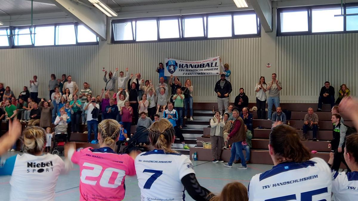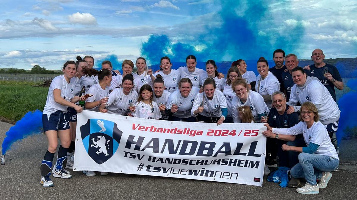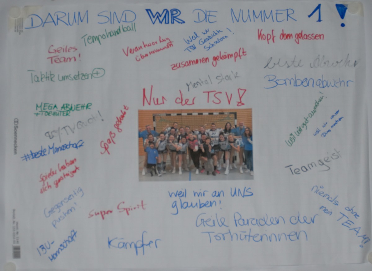 Beim Spielstand von 7:3 nahm das TSV-Trainerteam nach 15 Minuten seine Auszeit, allerdings nicht um die taktische Ausrichtung zu ändern, sondern um die Mannschaft zu informieren, dass die Landesliga-Meisterschaft und der Aufstieg unter Dach und Fach waren. Was war passiert? Der Tabellenzweite, die HG Oftersheim/Schwetzingen 2, dessen Spiel eine Stunde früher angepfiffen worden war, hatte einen 20:13-Vorsprung gegen die HG Saase verspielt und nur ein Unentschieden erreicht. Damit war die Tabellenführung unserer Mannschaft auf zwei Punkte angewachsen, und – dank des besseren direkten Vergleiches – unabhängig vom Ausgang des eigenen Spieles gesichert.
