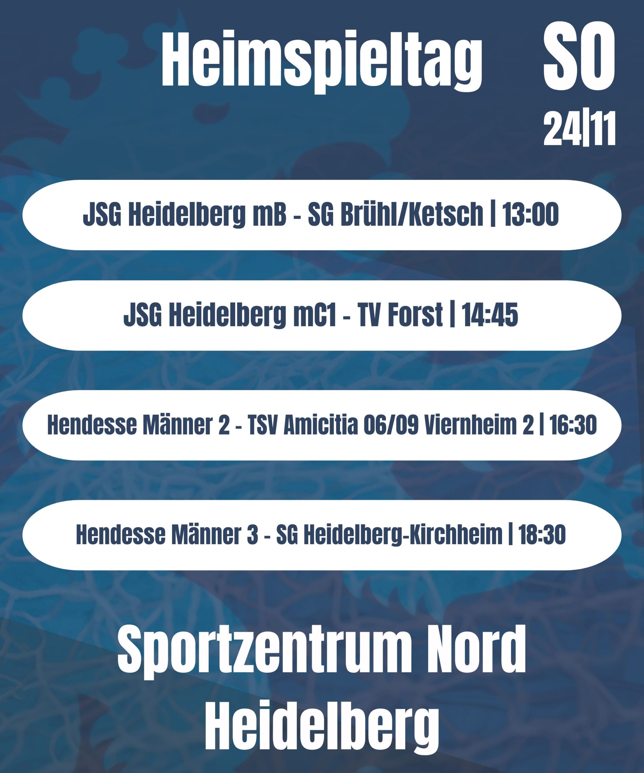 Um 10 Uhr beginnt direkt unsere E-Jugend gegen das ungeschlagene Team aus Seckenheim – lassen die Gäste ihre ersten Punkte in Handschuhsheim liegen? Danach versucht die mD nach zuletzt knappen Niederlagen wieder gegen S3L zu punkten. Spannend wird es auch im Spiel der mC2, die gegen die Jungs vom TV Eppelheim ihre perfekte Bilanz ausbauen und weiter an der Tabellenspitze festsetzen wollen. Für die weibliche B-Jugend geht es dann in ein schweres Duell gegen die Gäste aus Pforzheim. Für unsere beiden Damenmannschaften heißen die Teams ebenfalls Eppelheim und Pforzheim. Während die Zweite ihren vierten Sieg im vierten Spiel gegen die zweite Damenmannschaft aus Eppelheim einfahren will, versucht die Erste gegen Pforzheim 2 ihre kürzlich zurückerarbeitete Erfolgsspur beizubehalten. Den Abschluss vom Samstag bildet die M1 mit dem Spiel gegen die HSG Bruchsal/Untergrombach. Die formstarken Aufsteiger, welche mit zuletzt 5 Siegen in Folge auf dem 5. Tabellenplatz stehen, werden alles geben, um Punkte mit nach Hause zu nehmen. Wir werden selbstverständlich alles daran setzen, unsere Heimstärke zu demonstrieren. Den gesamten Vorbericht findet ihr zeitnah auf unseren Kanälen.