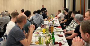 Ansatt einer Winterfeier lud die Abteilung Handball Männer ihre Sponsoren und die drei Männermannschaften am 06.01.23 zum Hendsemer Anwurf 2023 ein, ein Neujahrsessen im Hendsemer Löb. Neben Rückblick auf 2022 und Ausblick auf 2023 standen im Mittelpunkt der Austausch zwischen Mannschaften und Sponsoren sowie DANK zu sagen. Dank sagen an die Trainer und Spieler der drei Mannschaften und v.a. auch Dank sagen an die Sponsoren für ihre wertvolle Unterstützung während und weiterhin jetzt nach der Pandemie. Auch die Wirte im Hendsemer Löb, Damir und Tatjana Mankiewicz, sind neu als Sponsoren der Männermannschaften eingestiegen und deswegen galt es Beiden doppelt Dank zu sagen, für das neue Sponsoring und für die schon gewachsene Partnerschaft bei gemeinsamen Veranstaltungen, wie z.B. in 2022 die kulinarische Unterstützung bei der Hendsemer Kerwe und bei der 100-Jahresfeier.